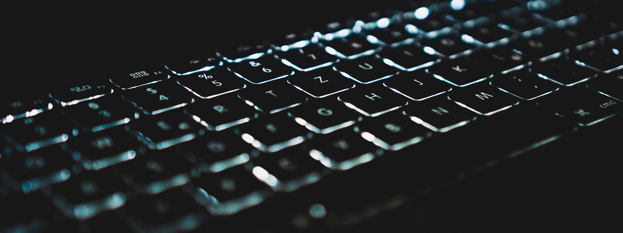 A close-up view of an illuminated computer keyboard in a dark environment, showing letter and number keys.